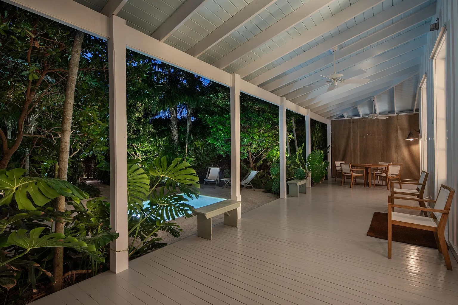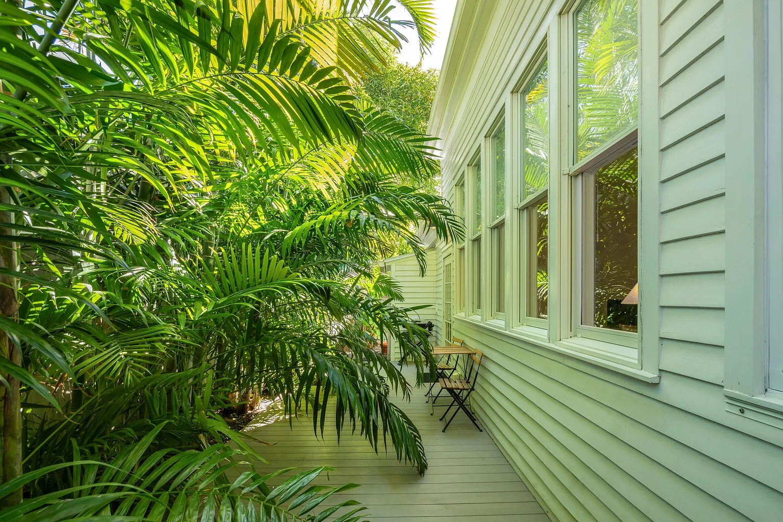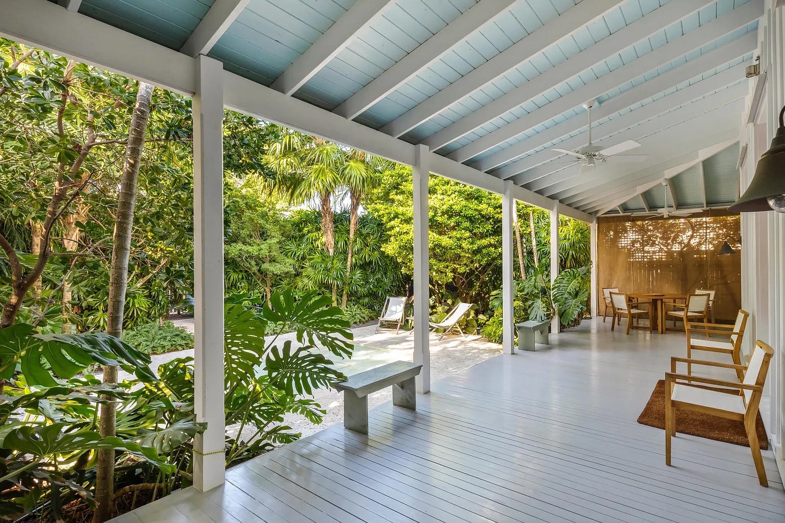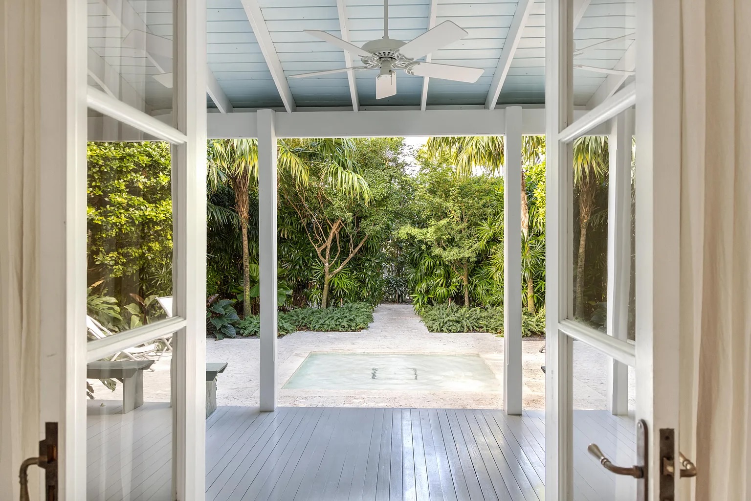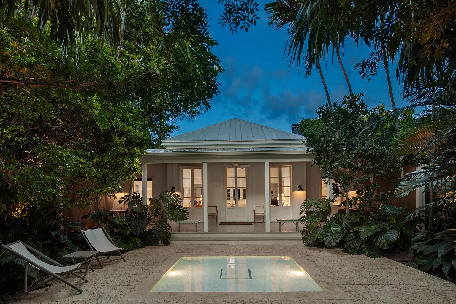 Follow a charming lush tropical pathway into a private indoor-outdoor retreat in the heart of Key West. Framed by exotic palms and tranquil water features, this classic island home feels like a hidden garden sanctuary. A spacious covered porch overlooks one of the property’s most captivating highlights its beautifully layered, serene landscaping designed for quiet mornings and relaxed evenings.