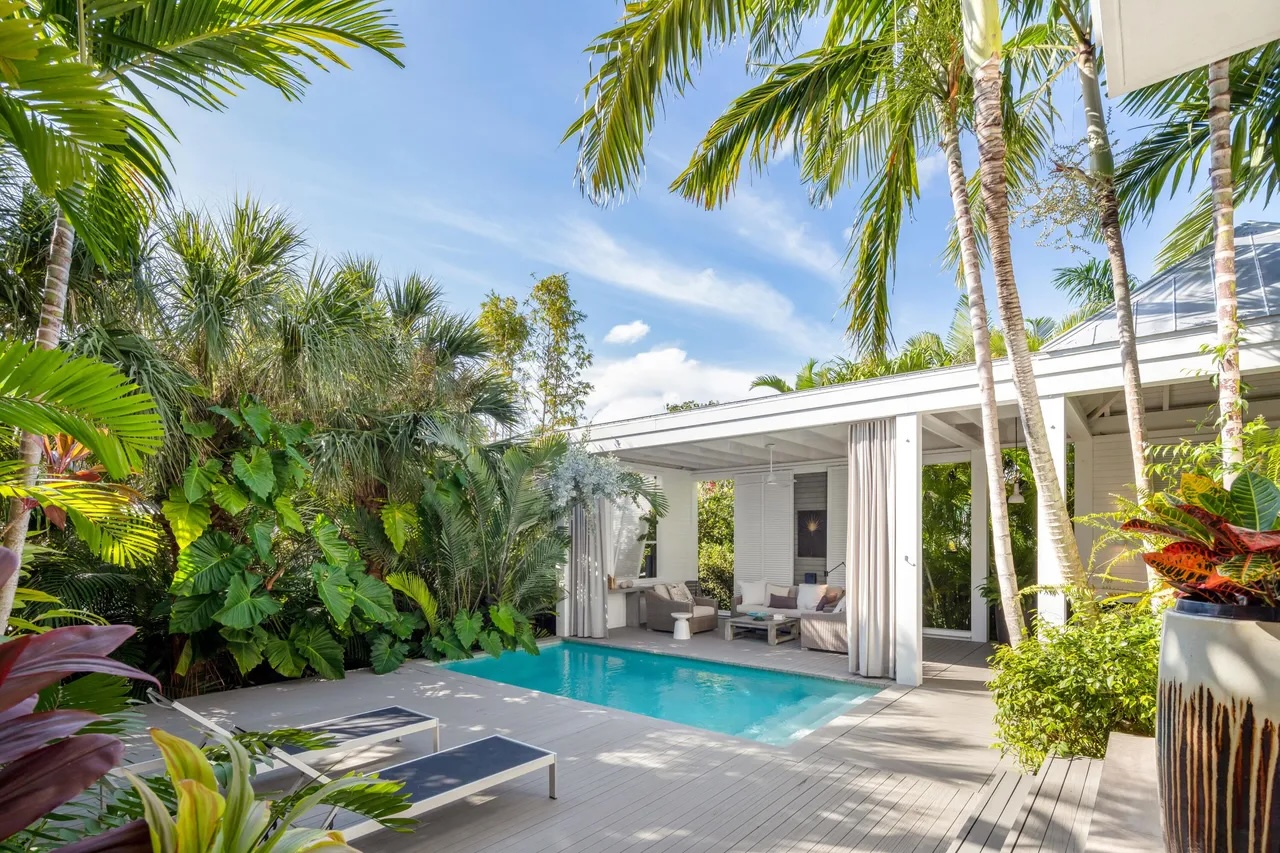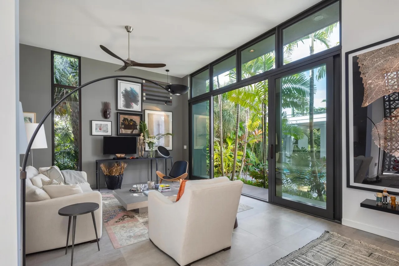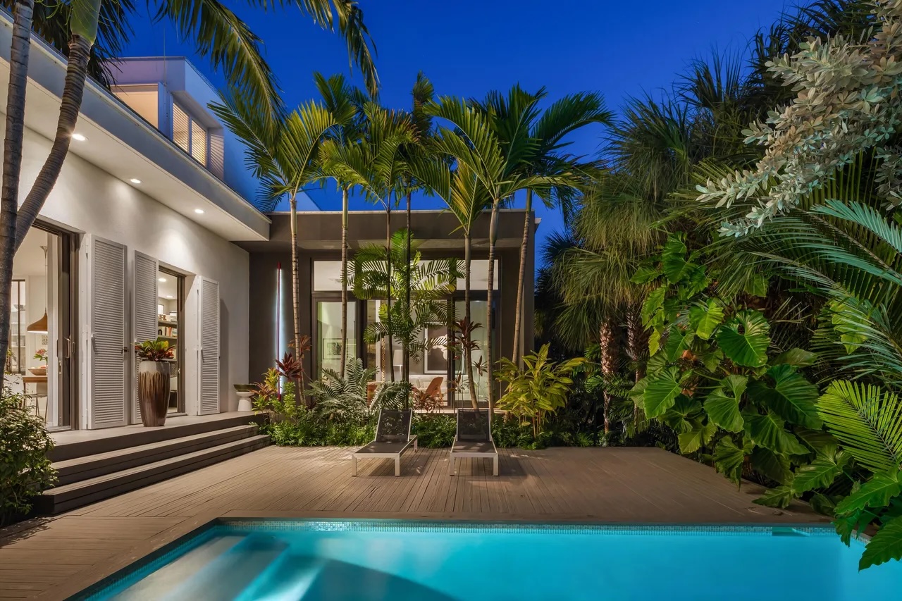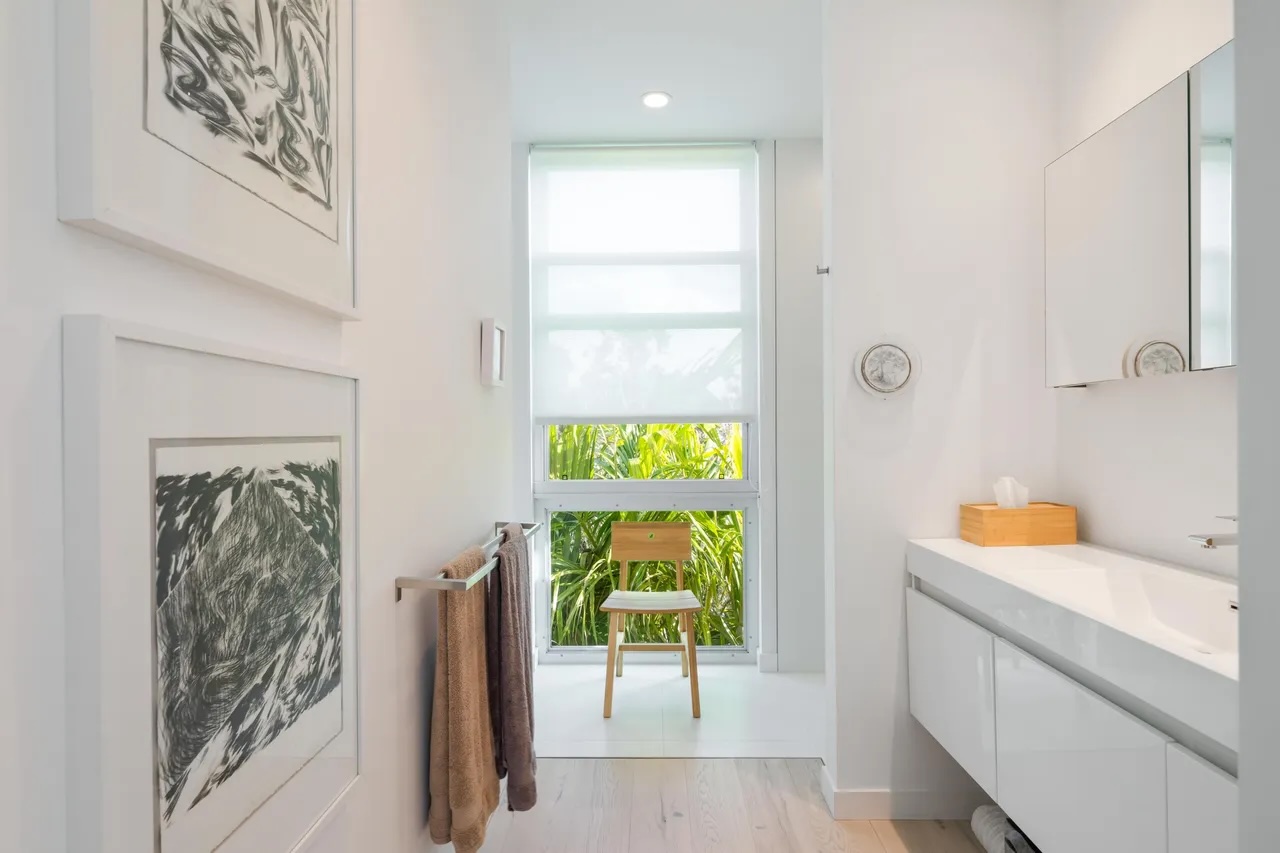 Located near Higgs Beach in Key West, this elevated two-bedroom, two-bath home offers a rare blend of privacy and central convenience. Tucked behind a distinctive red gate and surrounded by tropical landscaping, the property feels peaceful and secluded while remaining close to beaches and island attractions. Clean architectural lines, impact windows, and thoughtful design details create a bright and contemporary atmosphere throughout.