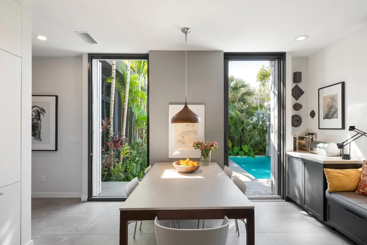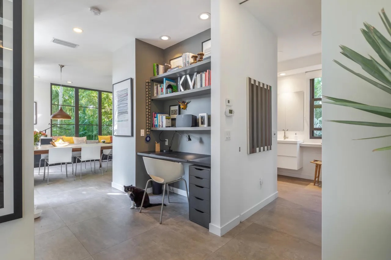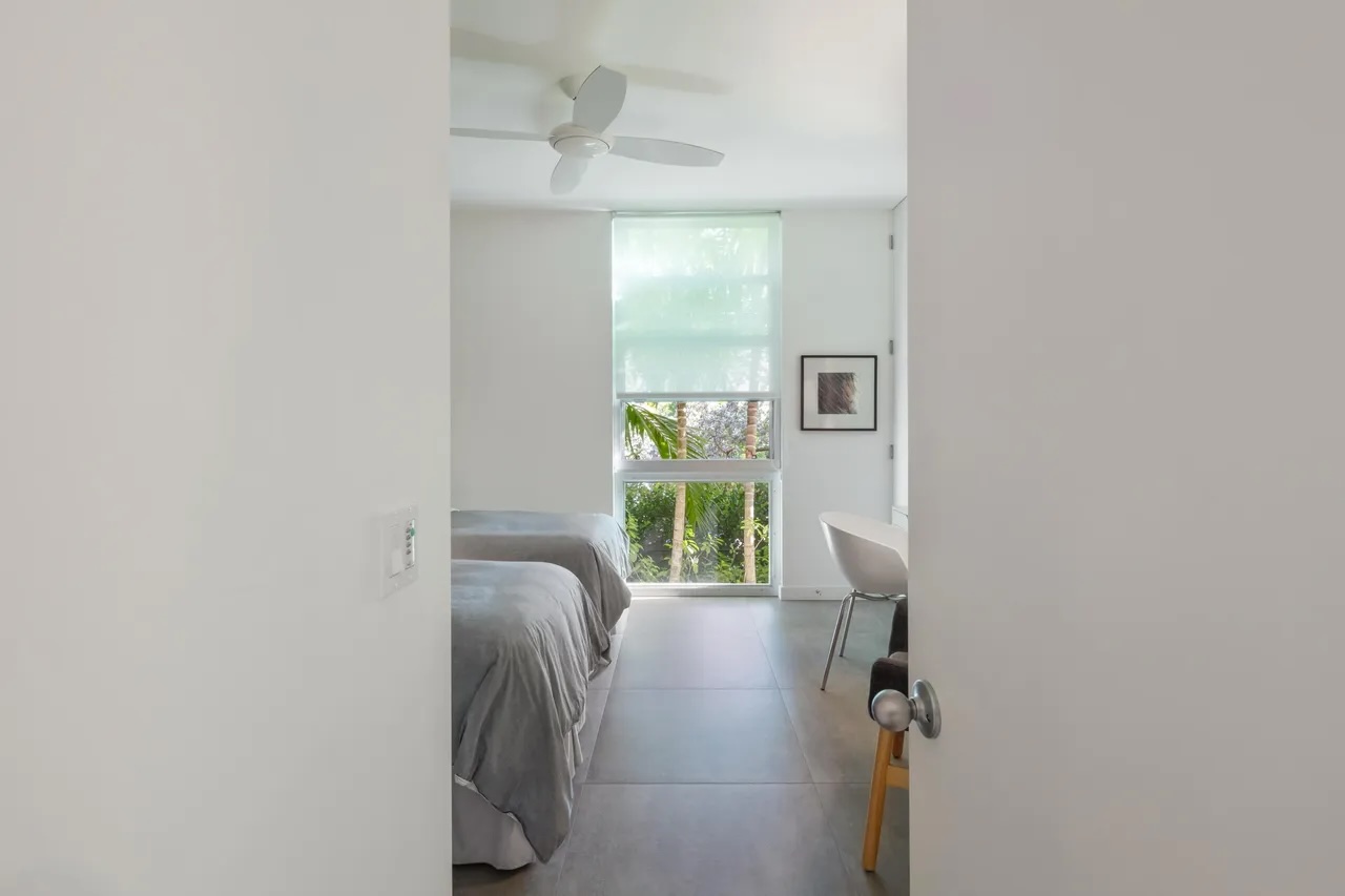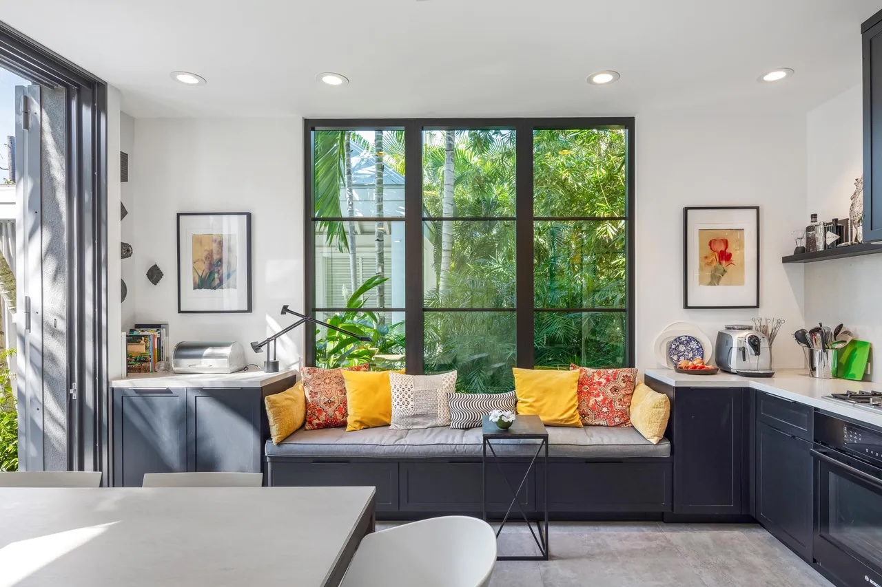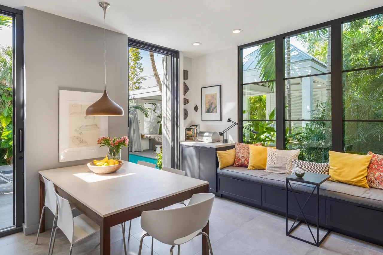 Located near Higgs Beach in Key West, this elevated two-bedroom, two-bath home offers a rare blend of privacy and central convenience. Tucked behind a distinctive red gate and surrounded by tropical landscaping, the property feels peaceful and secluded while remaining close to beaches and island attractions. Clean architectural lines, impact windows, and thoughtful design details create a bright and contemporary atmosphere throughout.